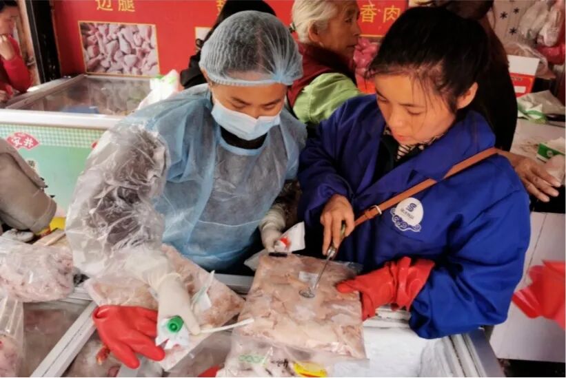 联合工作组对鸡场坪镇、淤泥乡、柏果镇冷链食品及从业人员进行检测。