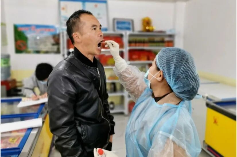 联合工作组对两河食品生产企业、大山镇、亦资街道冷链食品及从业人员进行核酸检测。