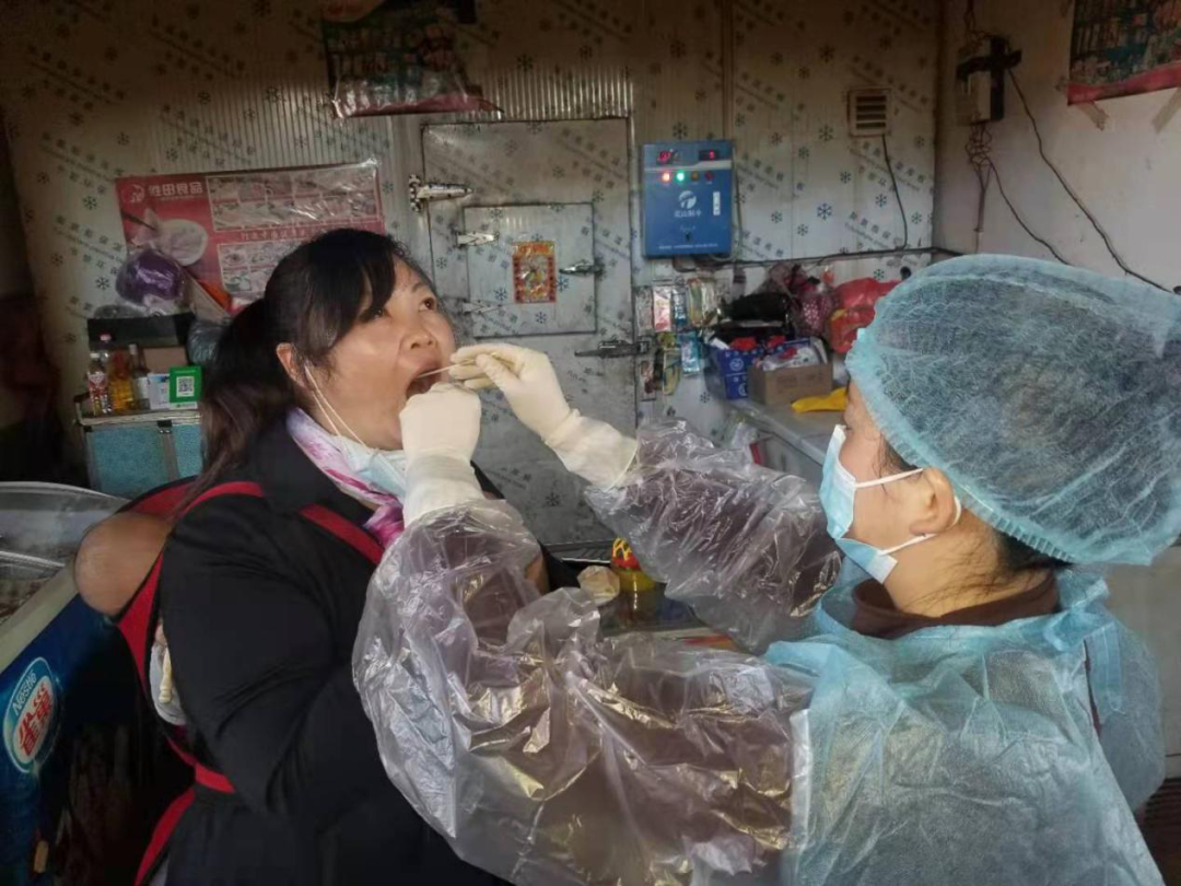 联合工作组对亦资街道冷链食品及从业人员进行检测