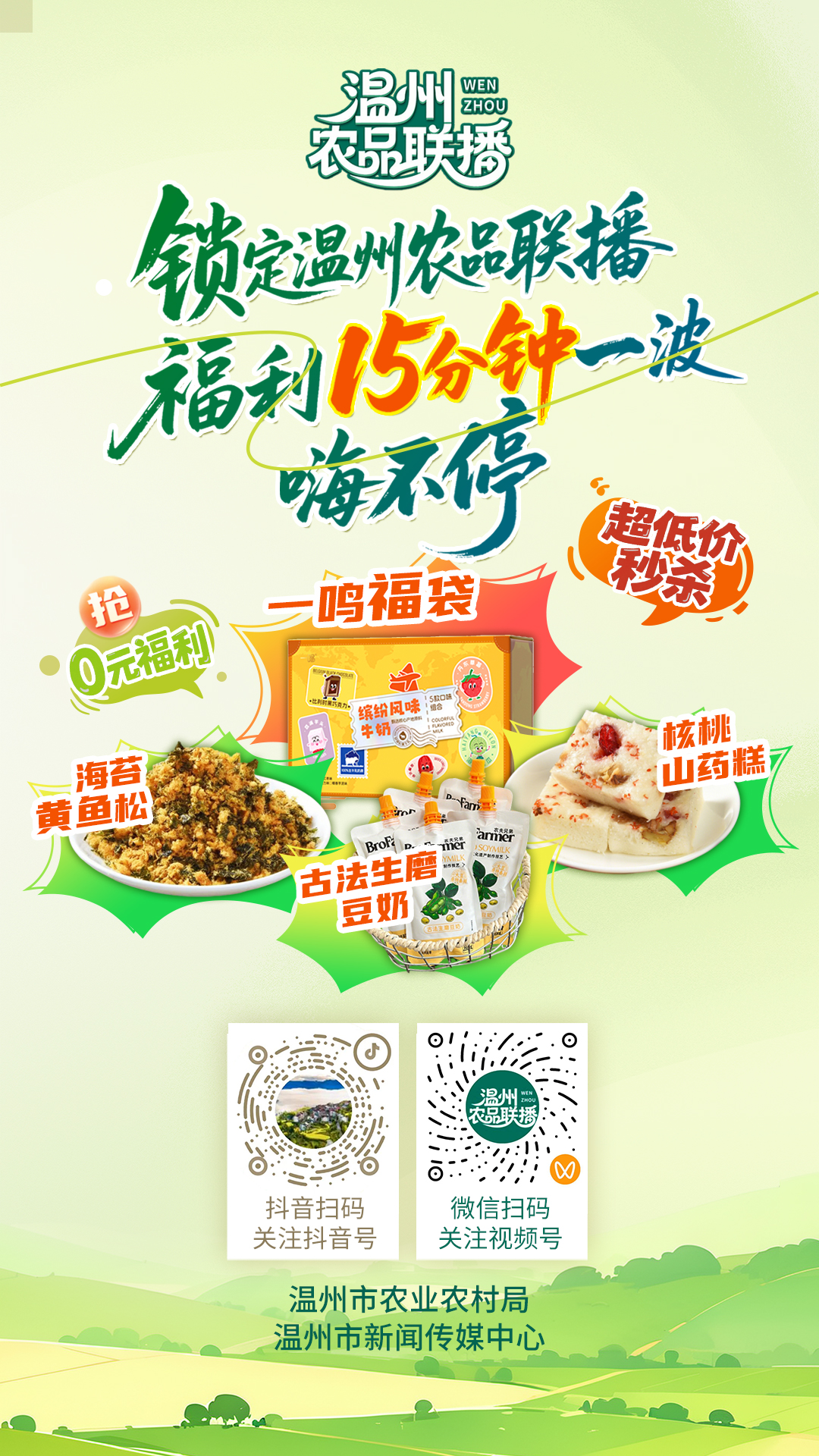 锁定“温州农品联播”直播间,我们一起,把最地道的温州味道,带回家。