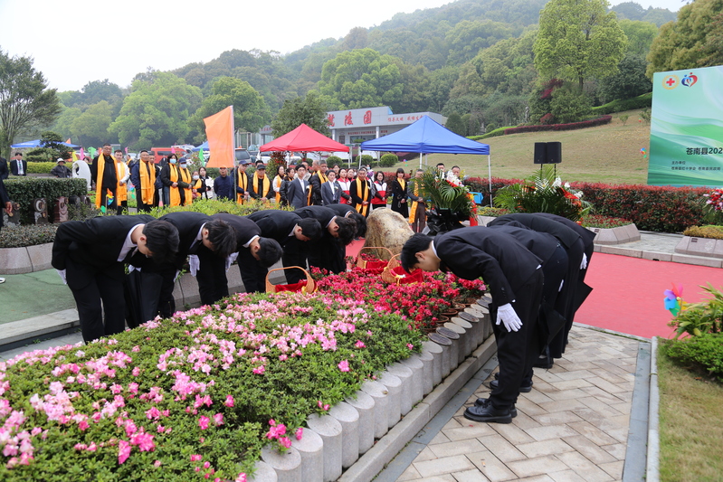 3月31日,苍南县2026年清明公祭暨人体器官捐献缅怀、生态安葬仪式在玉龙陵园人体器官遗体捐献纪念园举行。活动由苍南县民政局、县红十字会、桥墩镇人民政府联合主办,以“生命 曙光”为主题,以“生命有约 大爱永存”为核心理念,旨在推动形成敬畏生命、崇尚奉献、文明向善的社会新风。