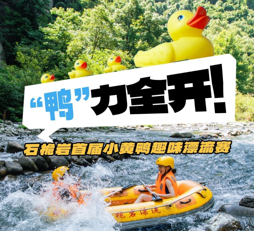 5月1日至5月5日永嘉县石桅岩景区首届小黄鸭漂流赛萌趣启航。活动分趣味竞速赛和水上争霸赛,趣味竞速赛中,游客可通过认领小程序认领一只专属自己的“参赛小黄鸭”,即可参赛,所有认领的鸭鸭在漂流起漂处集体“出征”,鸭子抵达指定终点后,最先冲线的前20名小黄鸭认领者可获得精美礼品。水上争霸赛中,景区将一次性倒入10000只小黄鸭,每日12时在漂流起漂处水域开展争霸赛,20分钟内以捞的鸭鸭数量多少来定排名,所有购买漂流体验票的游客都可参与。